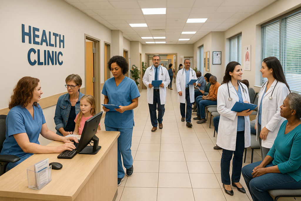 • 70–80% of care by NPs/PAs; doctors focus on advanced procedures and diagnoses.